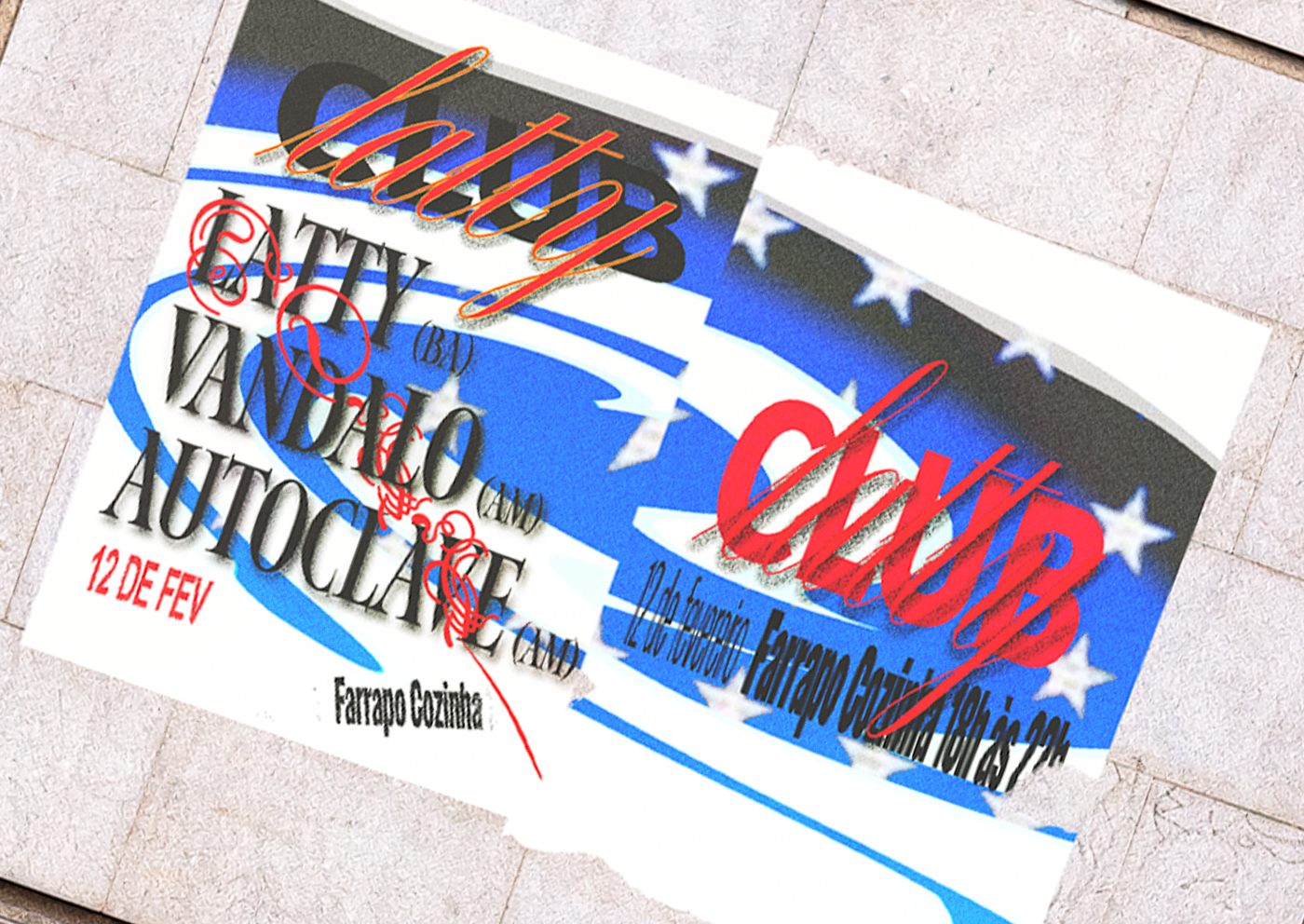 A oportunidade de conectar talentos de diferentes regiões — um DJ da Bahia, um evento em Manaus e minha direção criativa em Recife — foi crucial para olhar o Norte e o Nordeste do país como verdadeiras potências. Minha pesquisa visual partiu das cores e elementos das bandeiras da Bahia e do Amazonas, desdobrando-se em uma série de possibilidades e variações. Brinquei com elementos gráficos, como a estrela, para criar diferentes composições. Durante todo o processo, a trilha sonora foi essencial, ajudando a costurar as ideias e a dar ritmo e coesão ao resultado final.